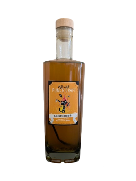 PUNCH CRAFT : Le SCHRUBB est un Punch traditionnel antillais remasterisé par MAD LAB ! Les rhums sont macérés avec des écorces d’agrumes grillées (Orange, Citron vert et jaune), du miel, et des gousses de vanille ! 32% Alc, 70cl. mélange de Rhum blanc agricole blanc de Guadeloupe Longueteau pour la fraîcheur et la puissante avec du Rhum Vieux de Martinique Clément pour la finesse et la gourmandise !